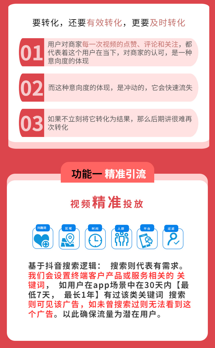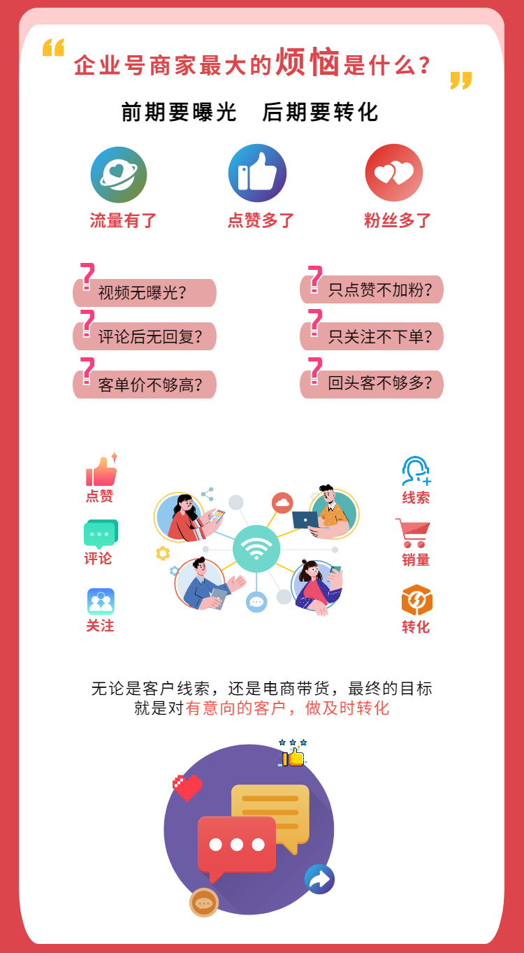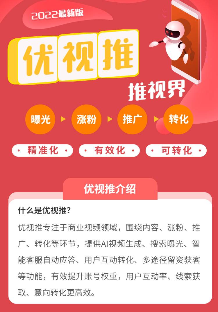 短視頻平臺(tái)智能營(yíng)銷(xiāo)獲客系統(tǒng)專(zhuān)注于商業(yè)視頻領(lǐng)域,國(guó)繞內(nèi)容、漲粉、推廣、轉(zhuǎn)化等環(huán)節(jié),提供Al視頻生成、搜索曝光、智能客服自動(dòng)應(yīng)答、用戶(hù)互動(dòng)轉(zhuǎn)化、多途徑留資獲客等功能,有效提升賬號(hào)權(quán)重,用戶(hù)互動(dòng)率、線索獲取、意向轉(zhuǎn)化更高效。